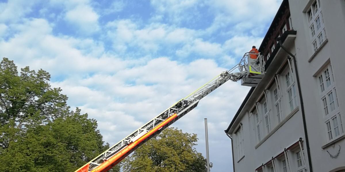 Auf Anforderung der Stadtverwaltung Wendlingen wurde ein Schädlingsbekämpfer bei der Entfernung eines Wespennest mit der DLK unterstützt.