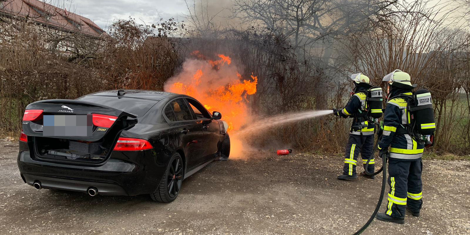 PKW-Brand an der Autobahnmeisterei Kirchheim. Dieser konnte durch einen Trupp unter Atemschutz mit einem Löschrohr schnell abgelöscht werden.