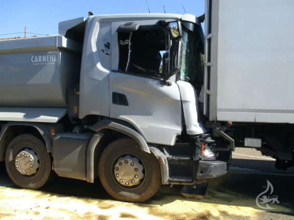 Einsatz-Nr. 4-023, Auffahrunfall zwischen zwei beteiligten LKW, Neue Straße – Höhe Einmündung Edeka