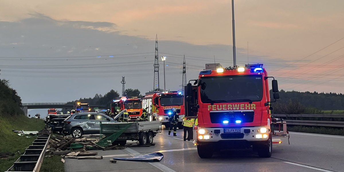 Verkehrsunfall mit mehreren Fahrzeugen, eine eingeschlossene Person wurde von der Feuerwehr befreit.