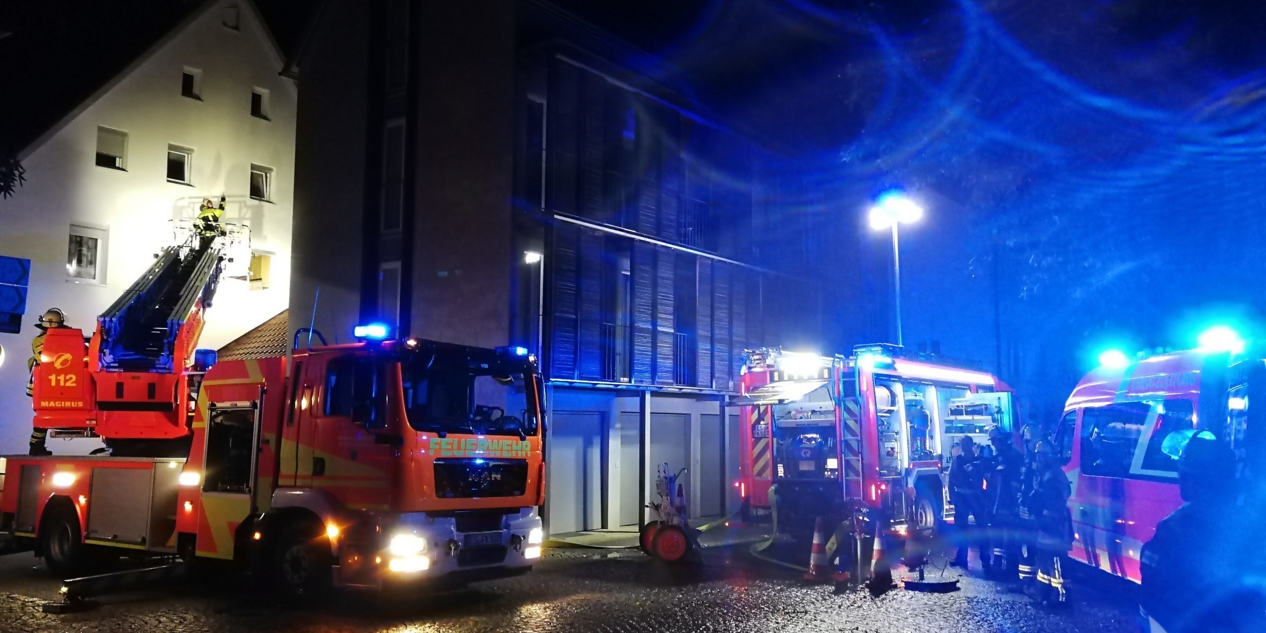 Dennoch stellten die Einsatzkräfte Schmorgeruch und leichte Rauchentwicklung in einer Wohnung fest. Deshalb wurde umgehend die DLK nachgefordert.