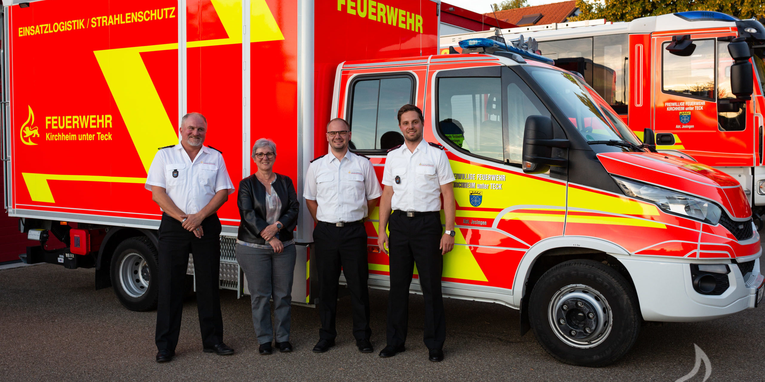 Sören Schäfer bedankte sich bei Michael Briki und Ortsvorsteherin Gabriele Armbruster für die gute Zusammenarbeit und Realisierung des Gerätewagen-Transport.
