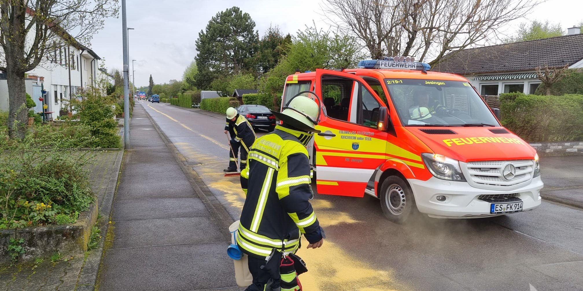 Am Dienstagmorgen, den 24.04.2023, wurde die Abteilung Jesingen zu einer Ölspur alarmiert, die sich über 800m Länge erstreckte.