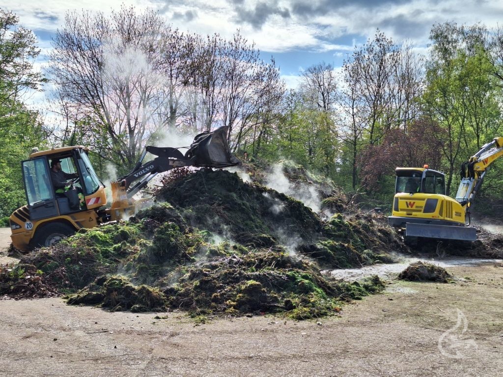 Nach Absprache mit dem Betreiber wurde beschlossen, den Reisighaufen auseinander zu ziehen und diesen zu wässern.