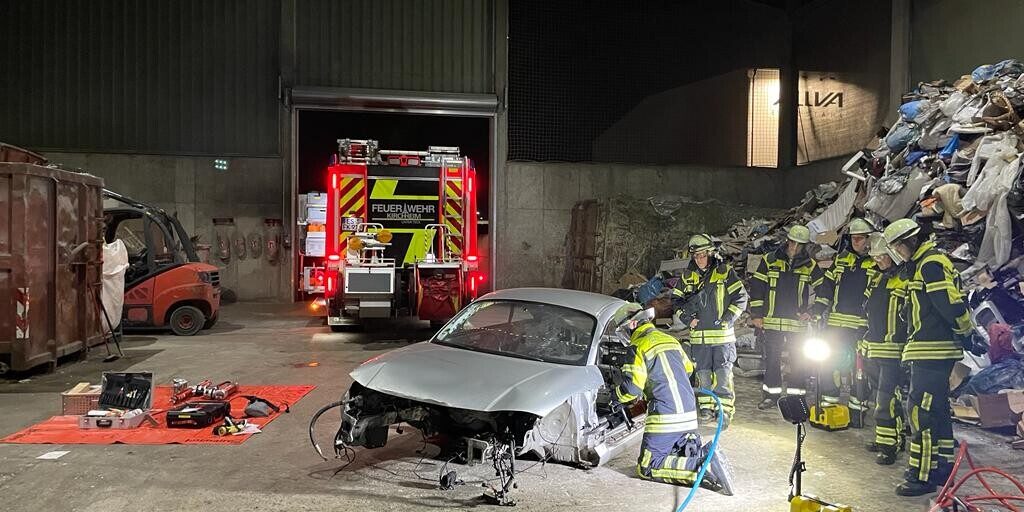 Mit den Rettungsgeräten zur Unfallrettung wie Spreizer, Schneidgerät, Rettungszylinder, Säbelsäge oder auch Handkreissäge wurde verschiedene Rettungstechniken trainiert.