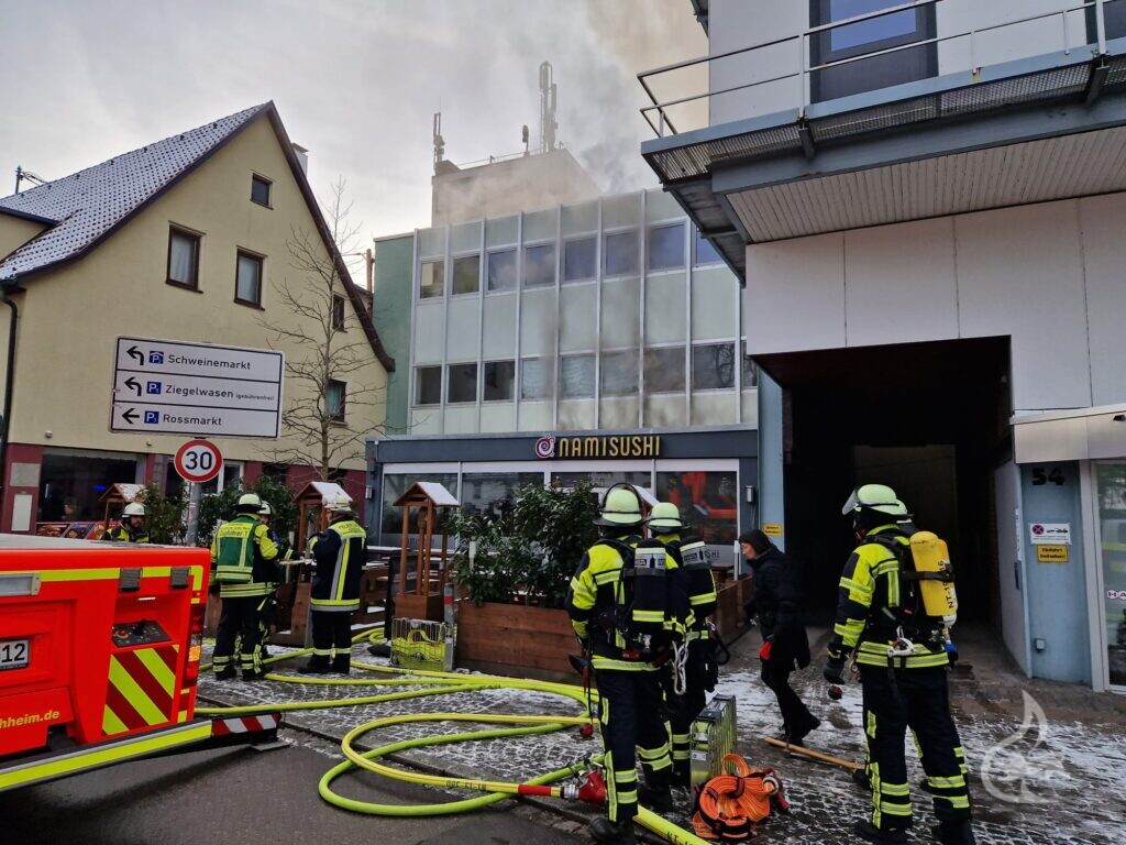 Aus bislang ungeklärter Ursache ist am Dienstagvormittag im Küchenbereich, bei den dortigen Kühlräumen einer Kirchheimer Gaststätte ein Brand ausgebrochen. Gegen 9.20 Uhr gingen die ersten Notrufe bei der Feuerwehr und der Polizei ein, dass Rauch aus dem Gebäude in der Alleenstraße dringen würde. Durch das rasche Eingreifen der Feuerwehr konnte ein Übergreifen der Flammen auf obere Stockwerke des Hauses verhindert werden. Die Räumlichkeiten wurden lediglich durch die starke Rauchentwicklung in Mitleidenschaft gezogen. Sie sind weiterhin bewohnbar. Der Schaden dürfte einer ersten Schätzung nach bei zirka 300.000 Euro liegen. Zur Brandbekämpfung war die Feuerwehr mit zehn Fahrzeugen und 47 Einsatzkräften vor Ort. Der Rettungsdienst rückte mit drei Fahrzeugen und sechs Einsatzkräften aus. Während des Einsatzes musste die Alleenstraße bis 14.15 Uhr im Bereich des Brandorts zwischen der Gaisgasse und der Hindenburgstraße voll gesperrt werden. Es wurde eine örtliche Umleitung eingerichtet. Das Polizeirevier Kirchheim hat die Ermittlungen zur Brandursache aufgenommen.