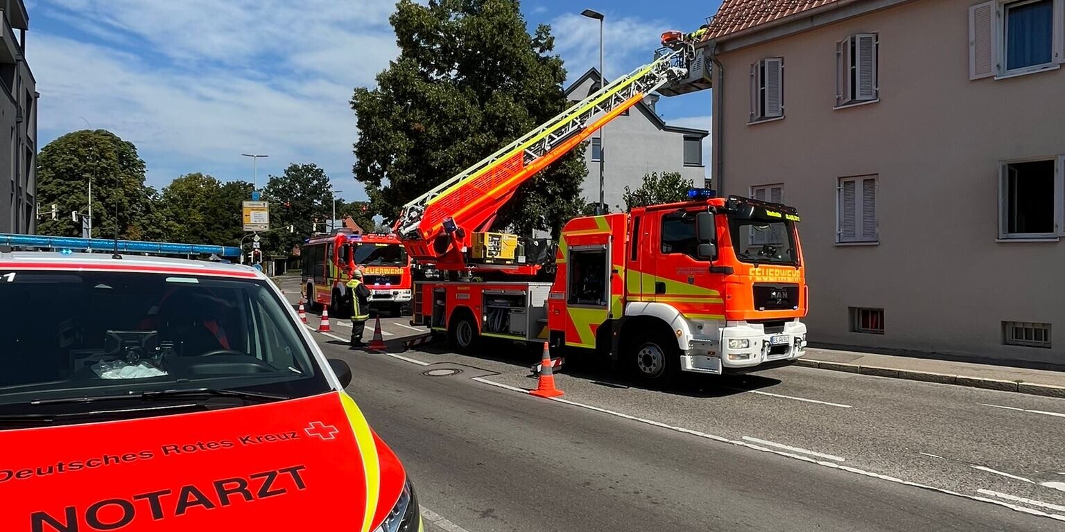 Die Feuerwehr Kirchheim wurde am heutigen Mittwochmittag zu einer Personenrettung in die Dettinger Straße alarmiert. Hier stürzte eine Person aus bislang ungeklärter Ursache und kam auf einem Vordach zur Endlage. Durch die Feuerwehr wurde zunächst ein Zugang zum Patienten mittels Steckleiter geschaffen. Nach der Erstversorgung durch den Rettungsdienst wurde der Verletzte nachfolgend mittels einer Schleifkorbtrage über die Drehleiter transportiert und an den Rettungsdienst übergeben.