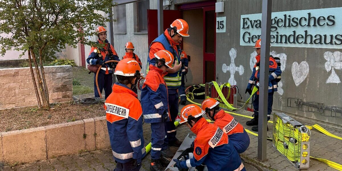Am Dienstag den 24. September stand für die Jugendlichen der Jugendfeuerwehr Jesingen ein weiteres Highlight des Jahres an, denn die Mitglieder des Jugendausschusses durften selbst eine Übung für die anderen Kameradinnen und Kameraden auf die Beine stellen. Da im Jahr zuvor ein Verkehrsunfall als Übungsszenario diente, entschied man sich dieses Jahr für ein Brandgeschehen. Hierfür wurde das Evangelische Gemeindehaus in Jesingen mittels Nebelmaschine verraucht und drei Personen im Gebäude versteckt.