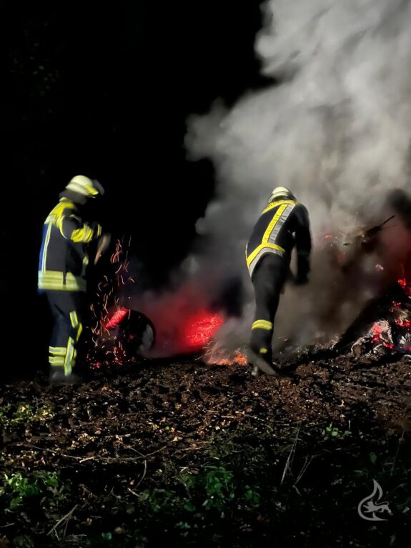 Einsatz: 4-034 Brand von Wurzelholz/Grünschnitt am Waldrand