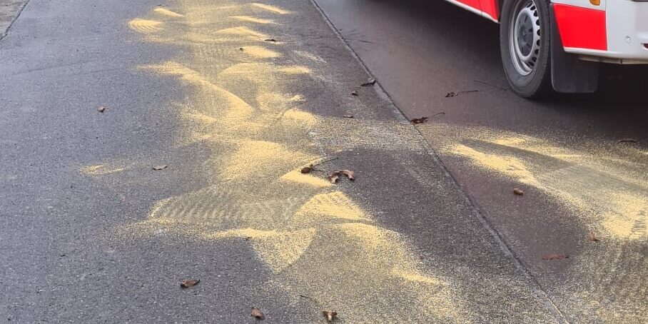 Noch während die Einsatzkräfte an der ersten Einsatzstelle auslaufende Betriebsmittel abgebunden haben, wurde eine weitere, davon unabhängige Ölspur in mehreren Straßen im Ortsgebiet entdeckt. Die Ölspur wurde durch weitere Kräfte ebenfalls abgestreut.
