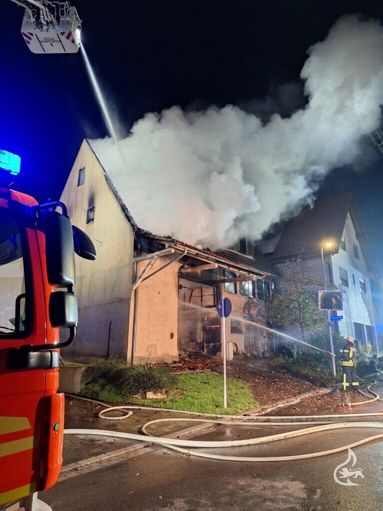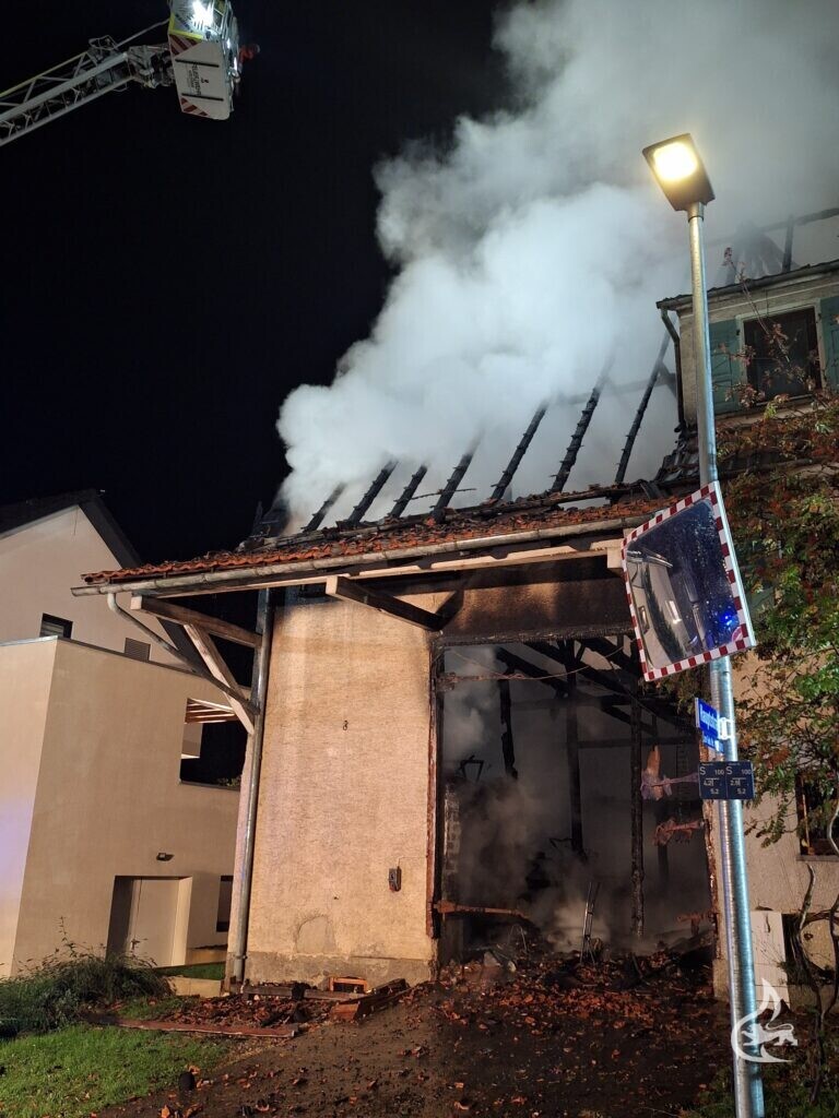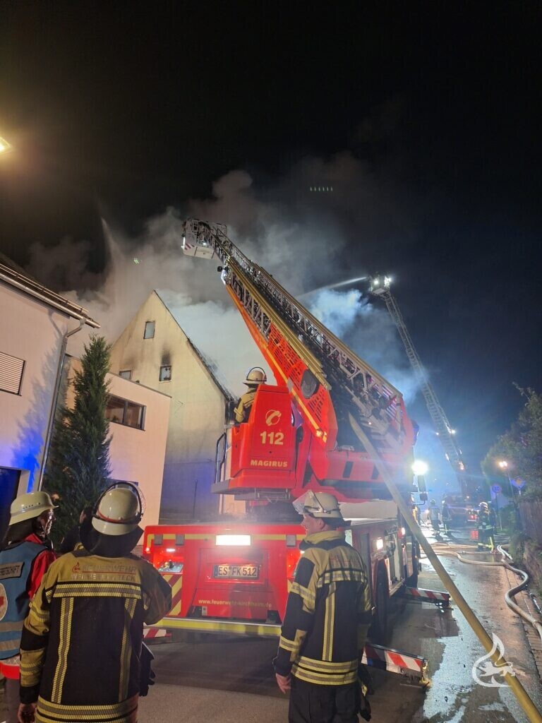 Die Feuerwehr Kirchheim Abt. Stadtmitte unterstützte die Feuerwehr Weilheim mit der Drehleiter bei einem Gebäudebrand in Hepsisau.