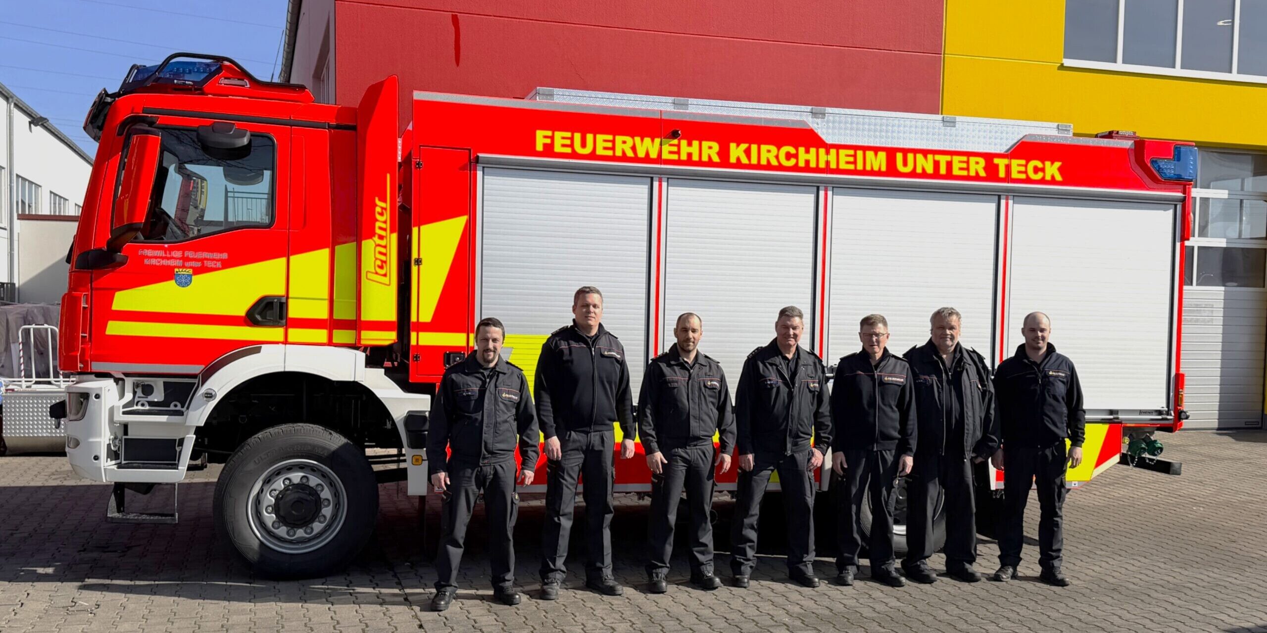 Am Samstag den 28.02.2026 konnte das Beschaffungsteam nach vorausgegangener Abnahme und Einweisung in die Fahrzeugtechnik das neue TLF 4000 von der Fa. Lentner übernehmen und nach Kirchheim überführen.
