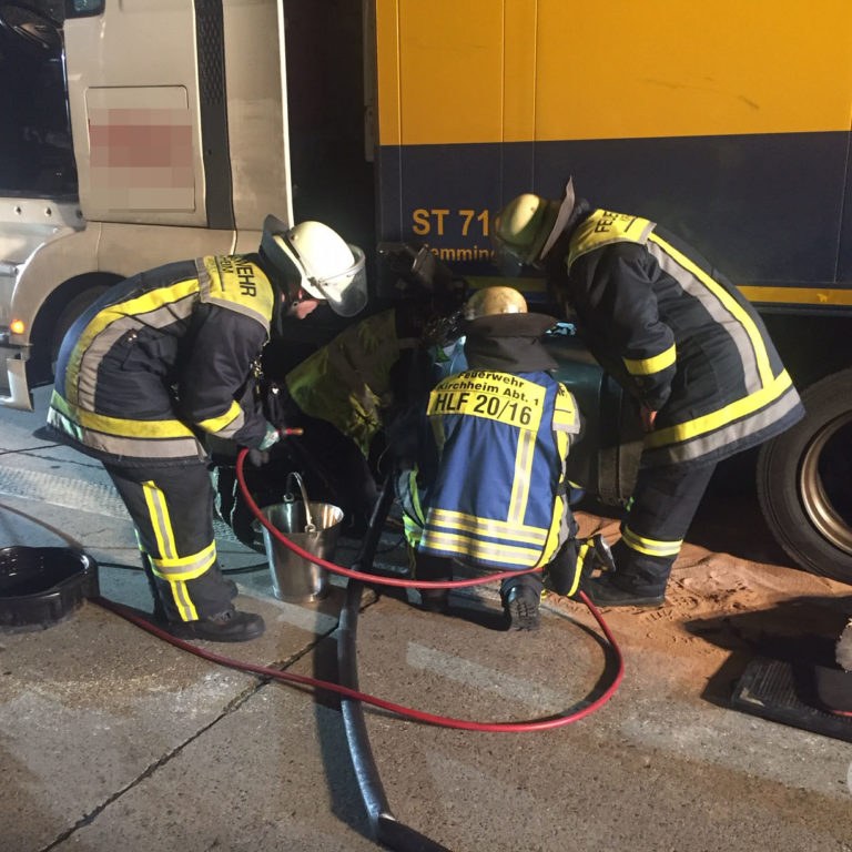 Einsatz-Nr. 1-294, Auslaufender Kraftstoff aus LKW – Tank aufgerissen, Bundesautobahn