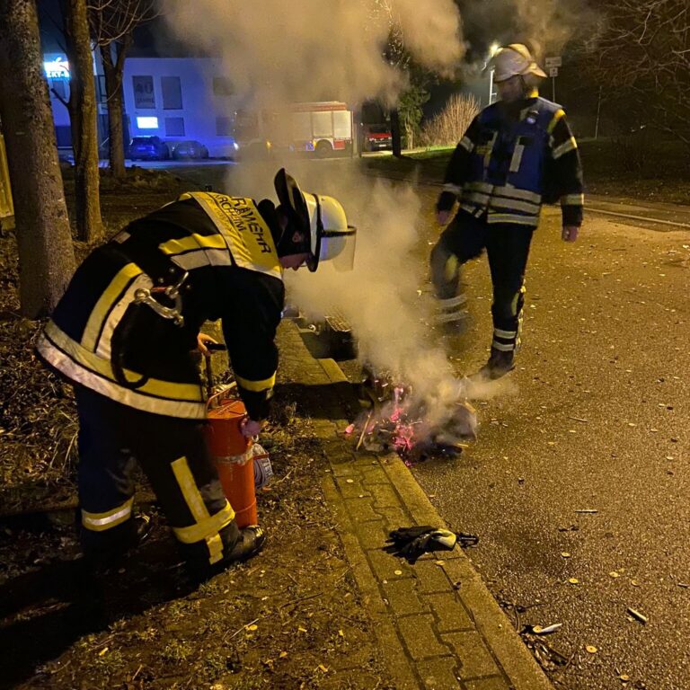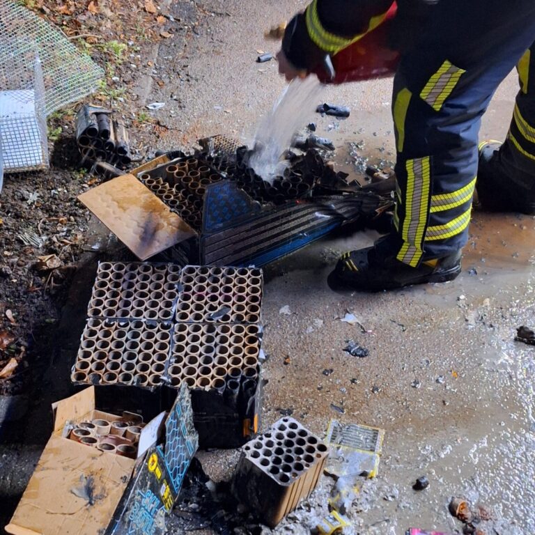 Einsatz: 4-002 Kirchheim-Nabern, Am Bolzplatz brannten Reste einer Feuerwerksbatterie